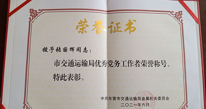 張國輝榮獲“市交通運輸局優秀黨務工作者”